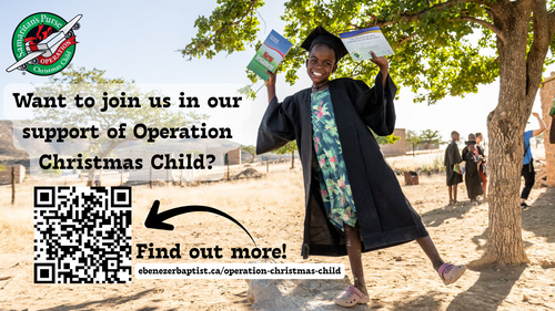 - E-transfer to giving@ebenezerbaptist.ca (make sure to include designation in the message)