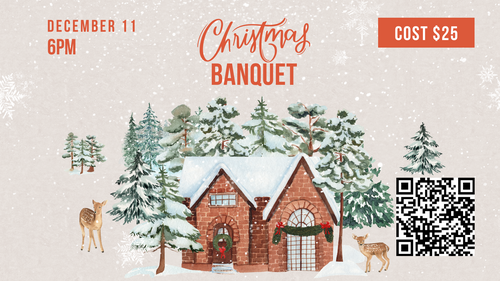 Thursday, December 11 @ 6pm - Christmas Banquet (Cost: $25/person)